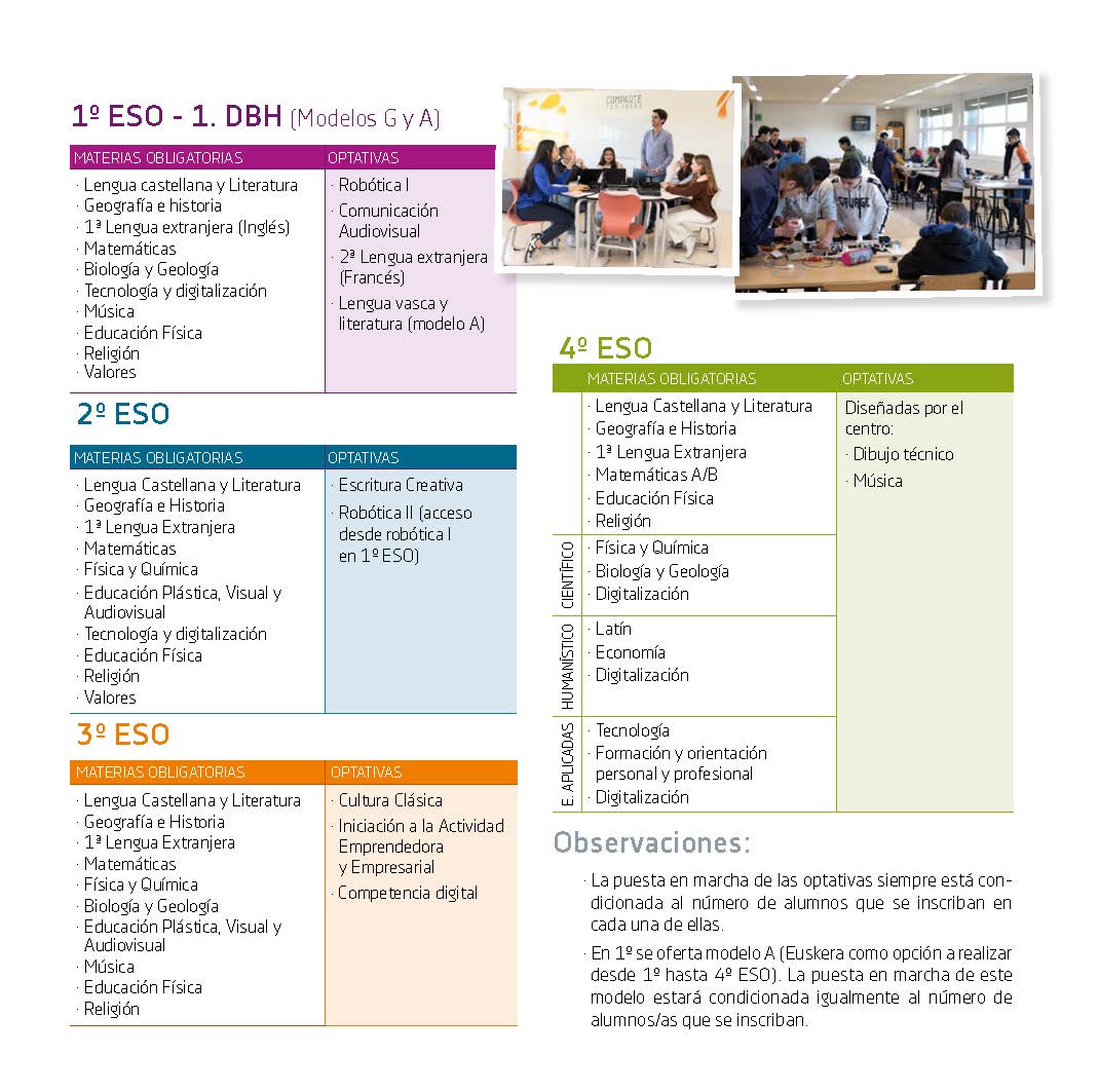 Prepárate para el futuroLa Educación Secundaria Obligatoria (ESO) es una etapa educativa clave y obligatoria que tiene como finalidad garantizar la formación integral de todo el alumnado. Se sitúa en un momento decisivo del desarrollo personal, social y académico, por lo que sus objetivos van mucho más allá de la adquisición de contenidos curriculares. La ESO busca proporcionar una base cultural sólida que permita comprender el mundo actual, desarrollar el pensamiento crítico y adquirir hábitos de trabajo, esfuerzo y responsabilidad.